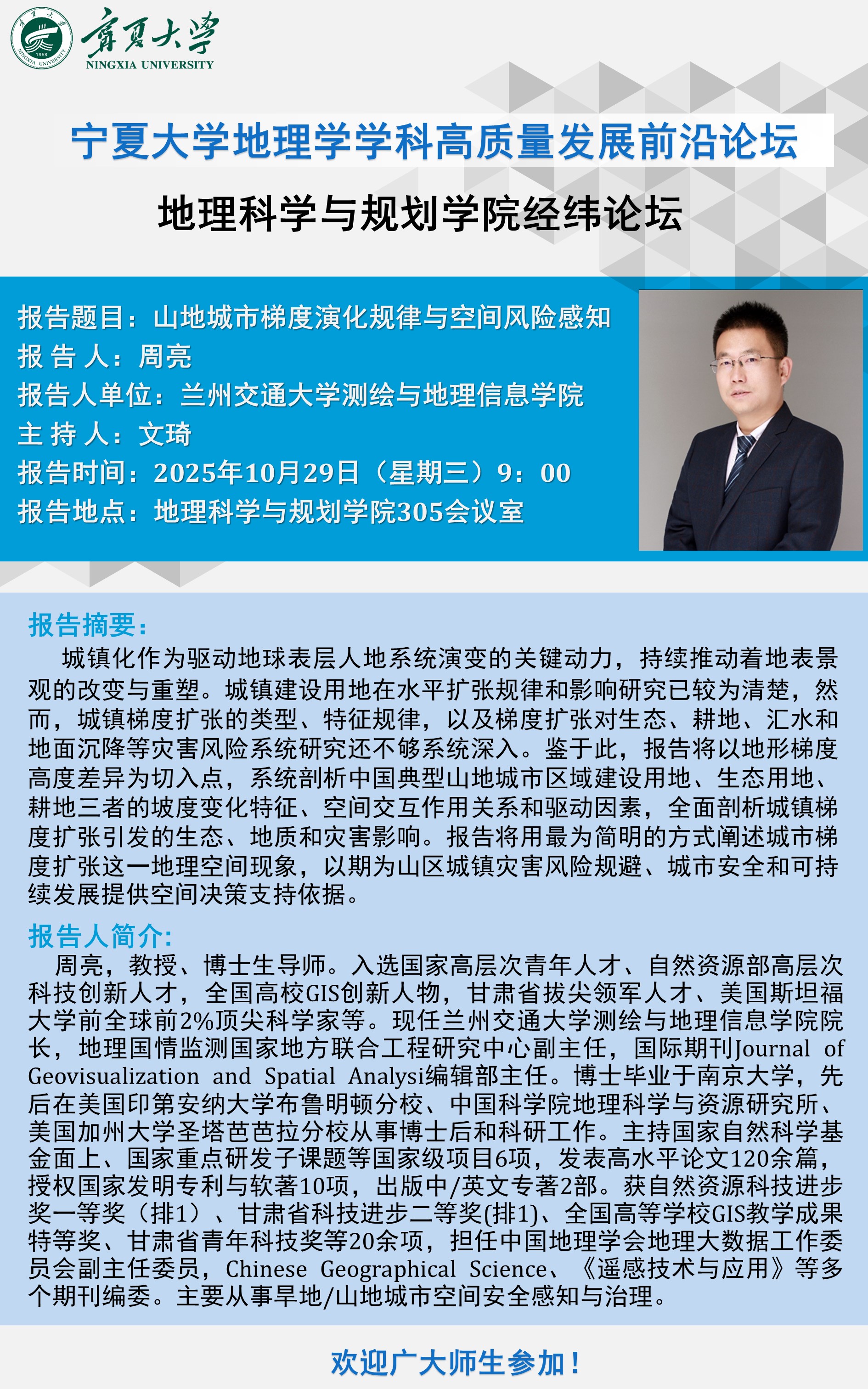 主要从事地理信息科学教学和城市空间信息与应急减灾规划研究工作。