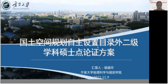 11月9—11日,在线德州扑克召开地理学一级学科自主设置目录外二级学科国土空间规划和教育硕士专业学位目录内二级学科学科教学(地理)(全日制)招生硕士点建设方案论证会。在线德州扑克 邀请西北大学李同昇教授、兰州大学杨永春教授、陕西师范大学李君轶教授、西北师范大学赵雪雁教授、中国人民大学郑国教授、江苏师范大学仇方道教授、华中师范大学金贵教授、银川市第三中学张娜校长,以及在线德州扑克 黄立军教授、王安全教授、王旭明教授参加论证指导。在线德州扑克 院长刘小鹏主持会议。