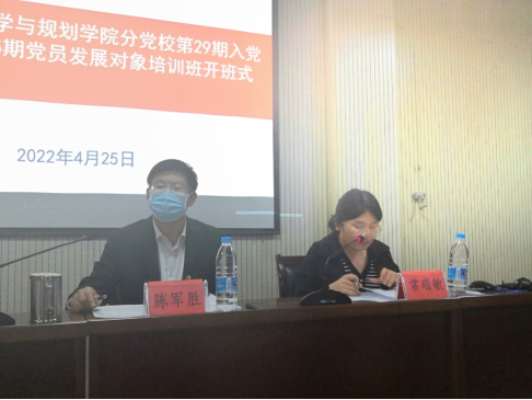 2021级地理科学类一班王晨阳同学、2019级人文地理与城乡规划一班陈韵雅同学分别代表入党积极分子和发展对象先后发言,表示要珍惜此次学习机会,并以实际行动争取早日成为一名共产党员。