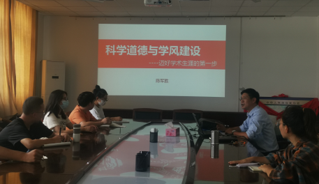 98日,由在线德州扑克 党委书记陈军胜同志主讲科学道德与学风建设教育主题,陈书记从问题与挑战、学术不端与科研不当、科研伦理与科研规范、如何做一个合格的研究工作者等方面进行了详细讲解。刘院长与陈书记的主题报告内容丰富、内涵深刻,为2022级研究生上好了“开学第一课”。