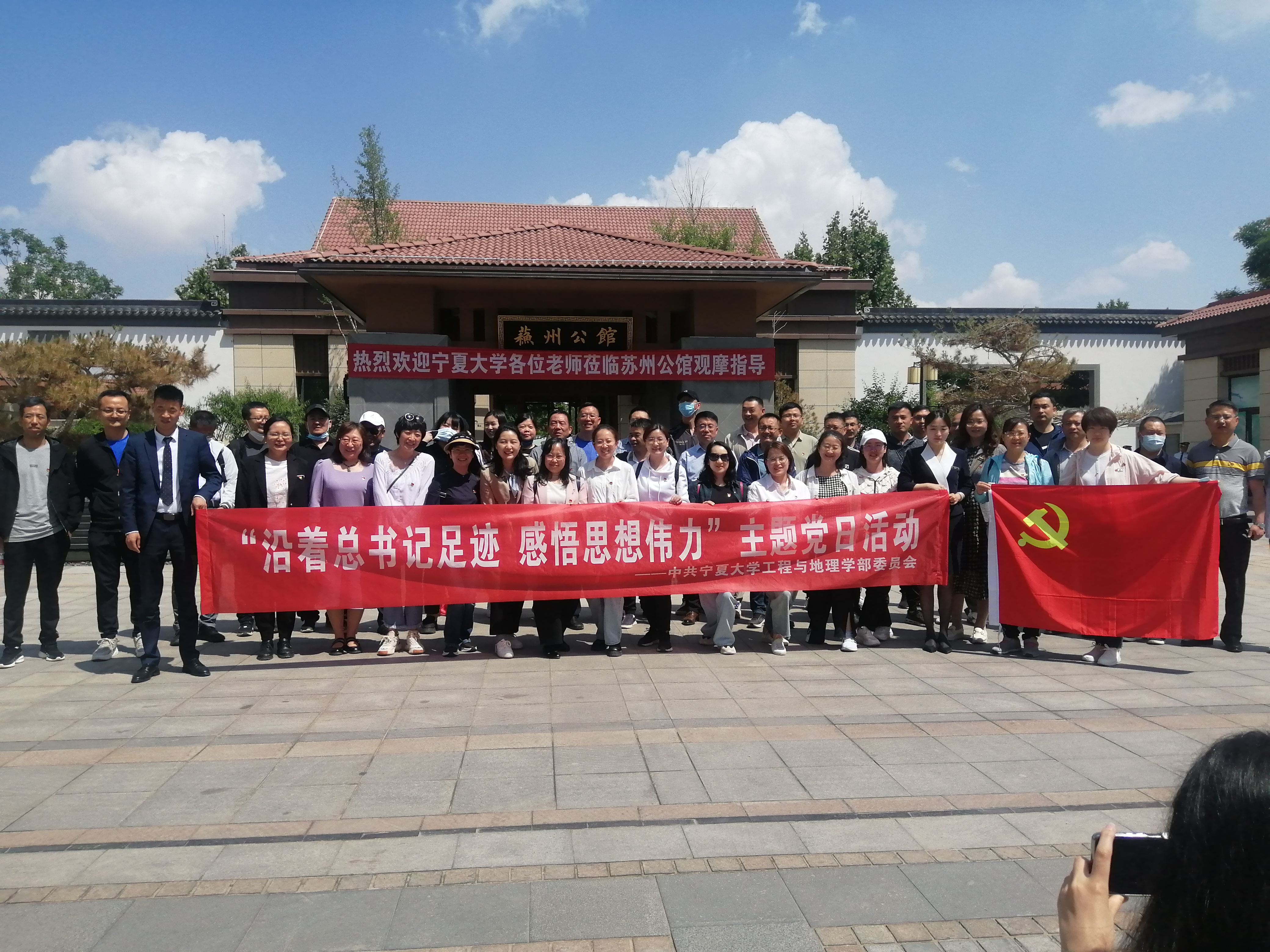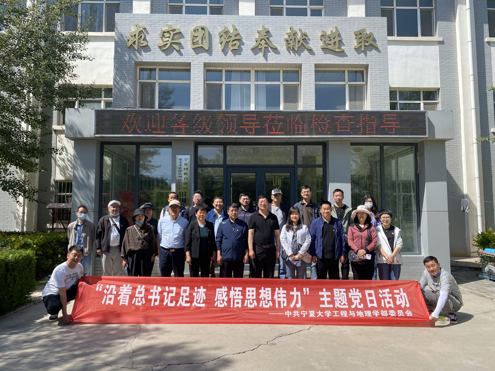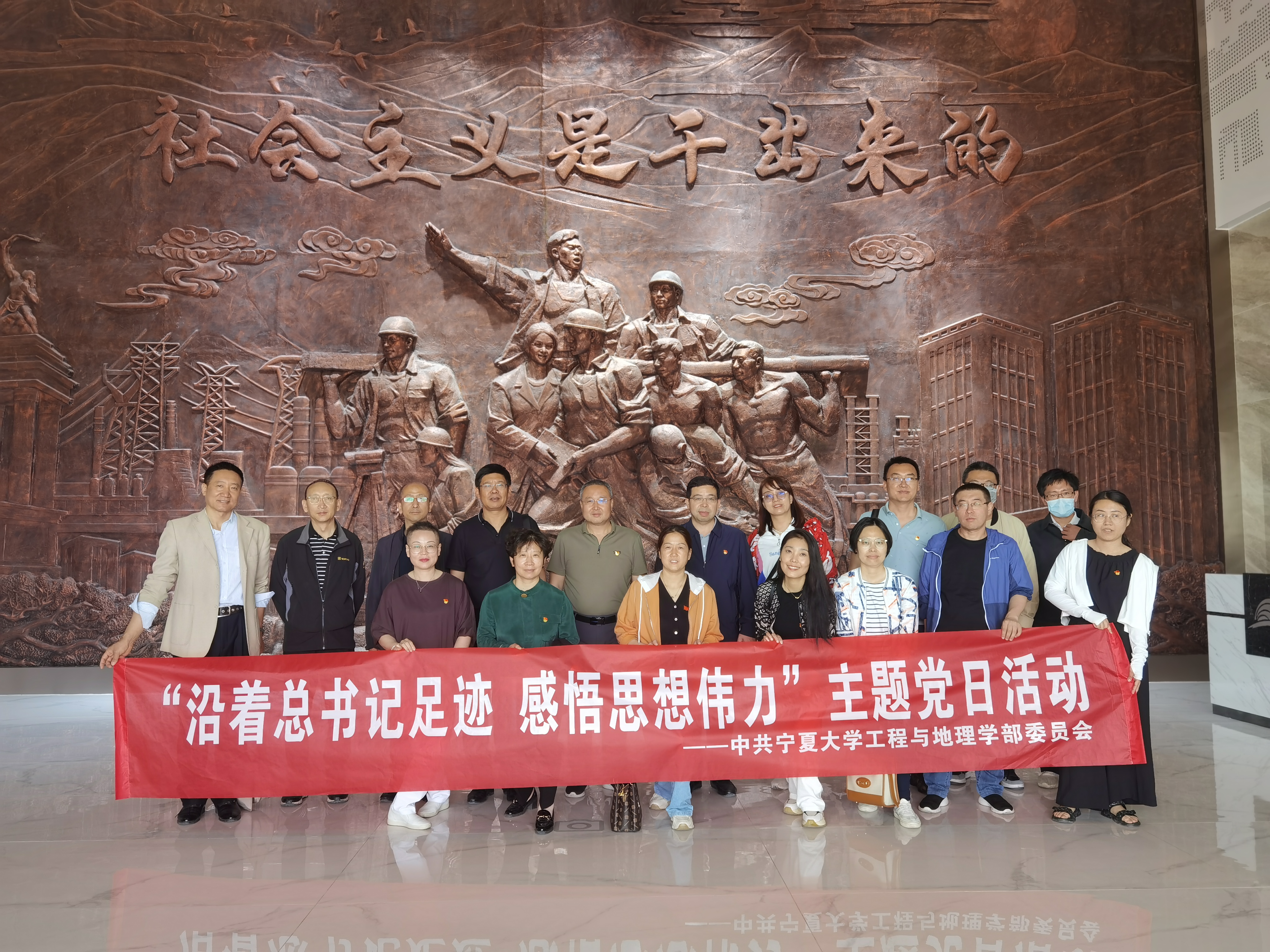 为推进学习贯彻习近平新时代中国特色社会主义思想主题教育走深走实,5月31日下午,工程与地理学部组织学部所有党员教师开展“沿着总书记足迹,感悟思想伟力”主题党日活动。结合在线德州扑克 专业特色设计了三条线路,分别是苏峪口水文站、宁东能源化工基地、贺兰县苏州公馆。