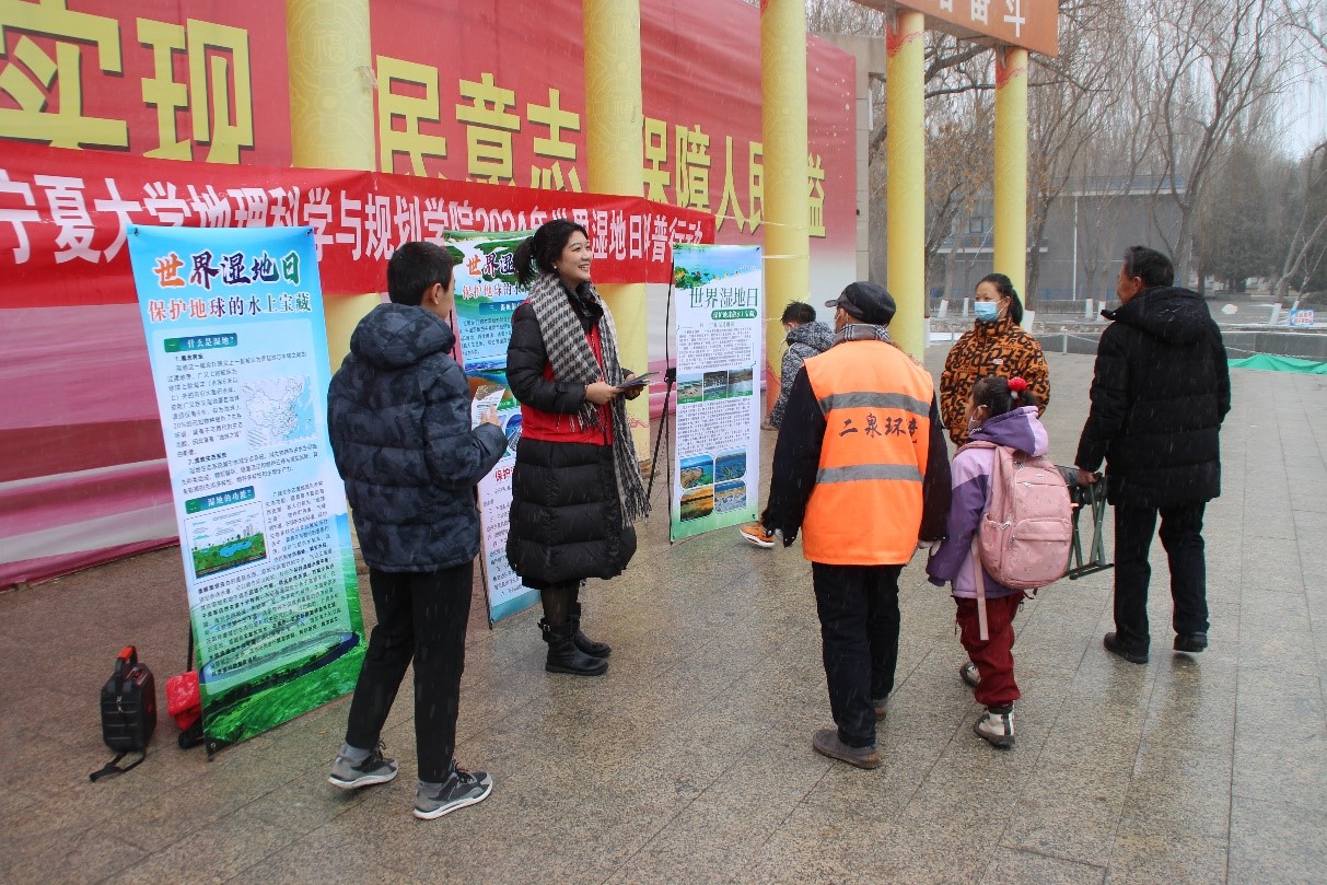 为深入践行习近平生态文明思想,提高广大市民对湿地的认知和保护意识。2月2日,在线德州扑克 师生志愿者在银川市中山公园文化广场开展第28届“世界湿地日”科普活动。