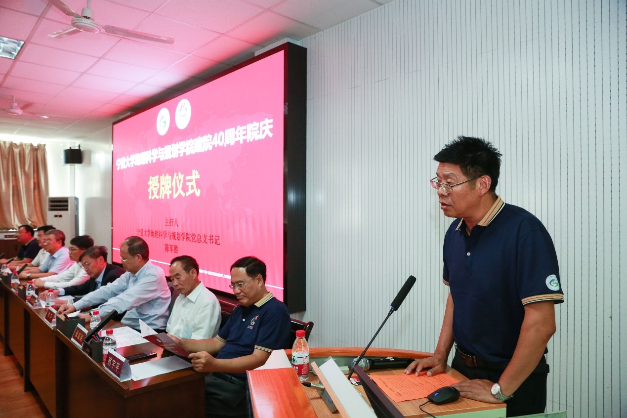 在校生代表王晨阳说“站在历史的节点上,身后的荒芜早已变了模样,明日的路定是花繁锦簇,愿吾辈敢想敢做、敢拼敢闯,用实践赋予‘地理’二字新时代的意义。”