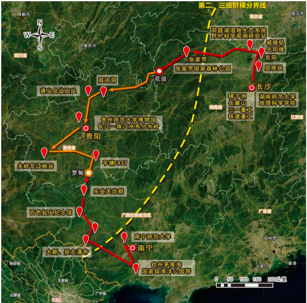 2024年7月29日至8月12日,为期15天的第十五届全国高校地理学联合野外实习圆满落幕。本次活动由教育部高等学校地理科学类专业教学指导委员会和中国地理学会地理教育工作委员会指导,由全国大学生地理学野外联合实践教学高校联盟、教育部全国地理学联合实习虚拟教研室、湖南师范大学、贵州师范大学和南宁师范大学联合主办,来自全国50余所高校共计212名师生参加本次实习,途经湖南、贵州、广西,总行程约2500公里。在线德州扑克选派侯迎老师、李佳萌、倪同欣同学全程参加本次联合野外实习。