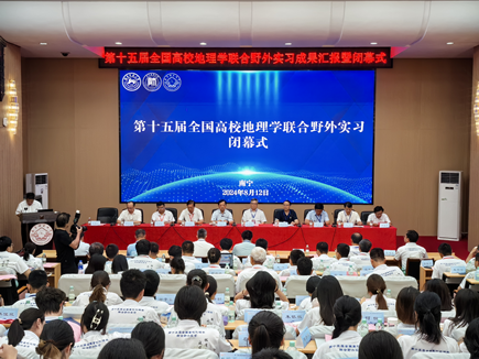 8月12日,南宁师范大学成功举办了第十五届全国高校地理学联合野外实习闭幕式,标志着本次实习活动圆满落幕。此次联合野外实习活动,不仅是对地理学知识的一次深刻实践,更是对人才培养模式的一次重要创新探索。通过跨区域、多主题的实地考察与深入研讨,同学们不仅扎实巩固了地理学的基础知识,还显著增强了创新思维、团队协作与吃苦耐劳的能力。此外,本次活动还激发了同学们的家国情怀,促使他们树立更为崇高的理想与抱负,在追求个人成长与发展的道路上,不忘肩负社会责任,积极贡献自己的力量。
