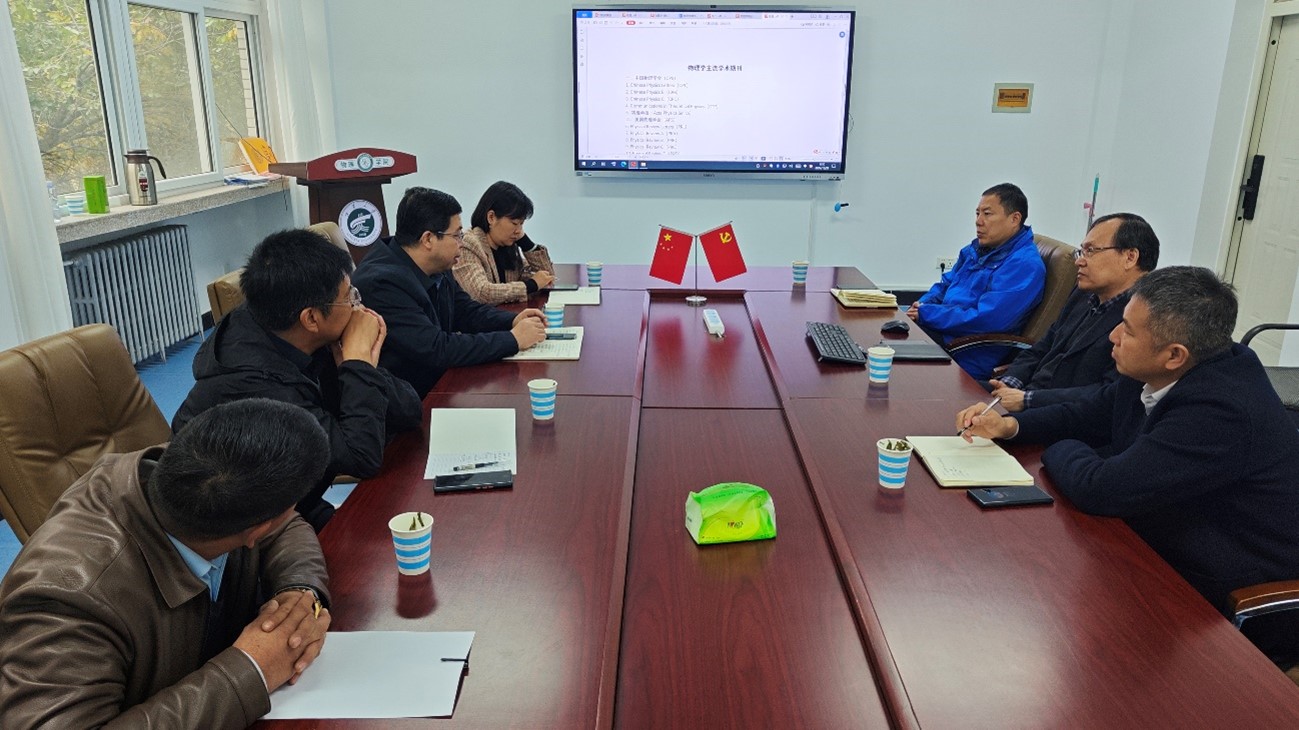 10月21日上午,在线德州扑克 党总支书记陈军胜、院长刘小鹏一行赴物理在线德州扑克 调研博士点建设工作,物理在线德州扑克 党总支书记王恒、院长王旭明参加调研座谈会。