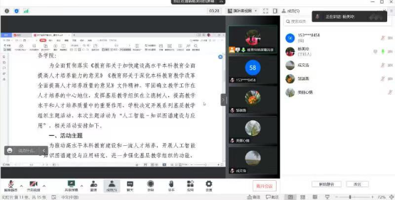 3、大家一致认为,地理科学专业(师范)作为国家一流专业建设点,要抢抓机遇,通过开展人工智能—知识图谱建设与应用研究,促进国家一流专业建设。