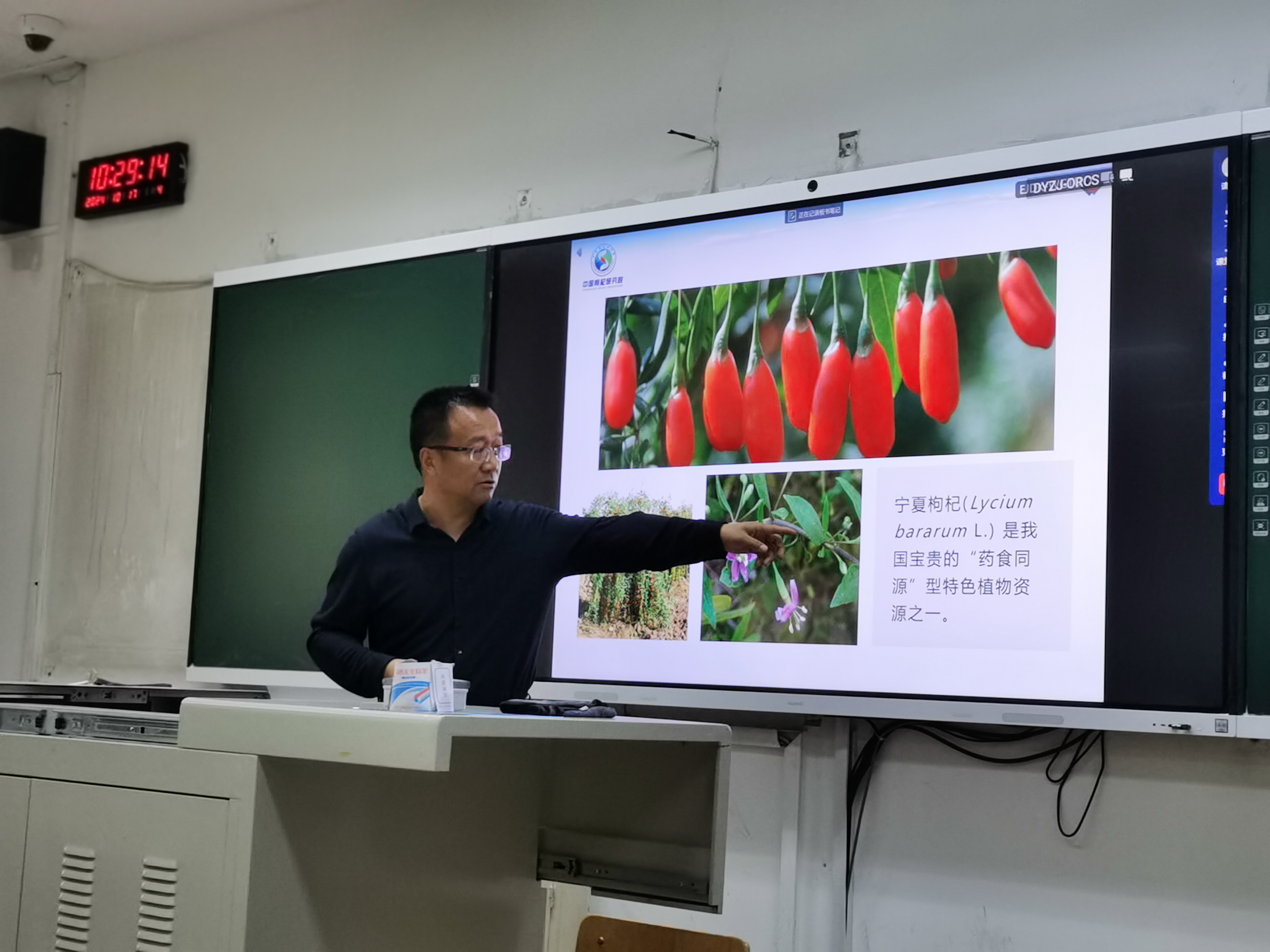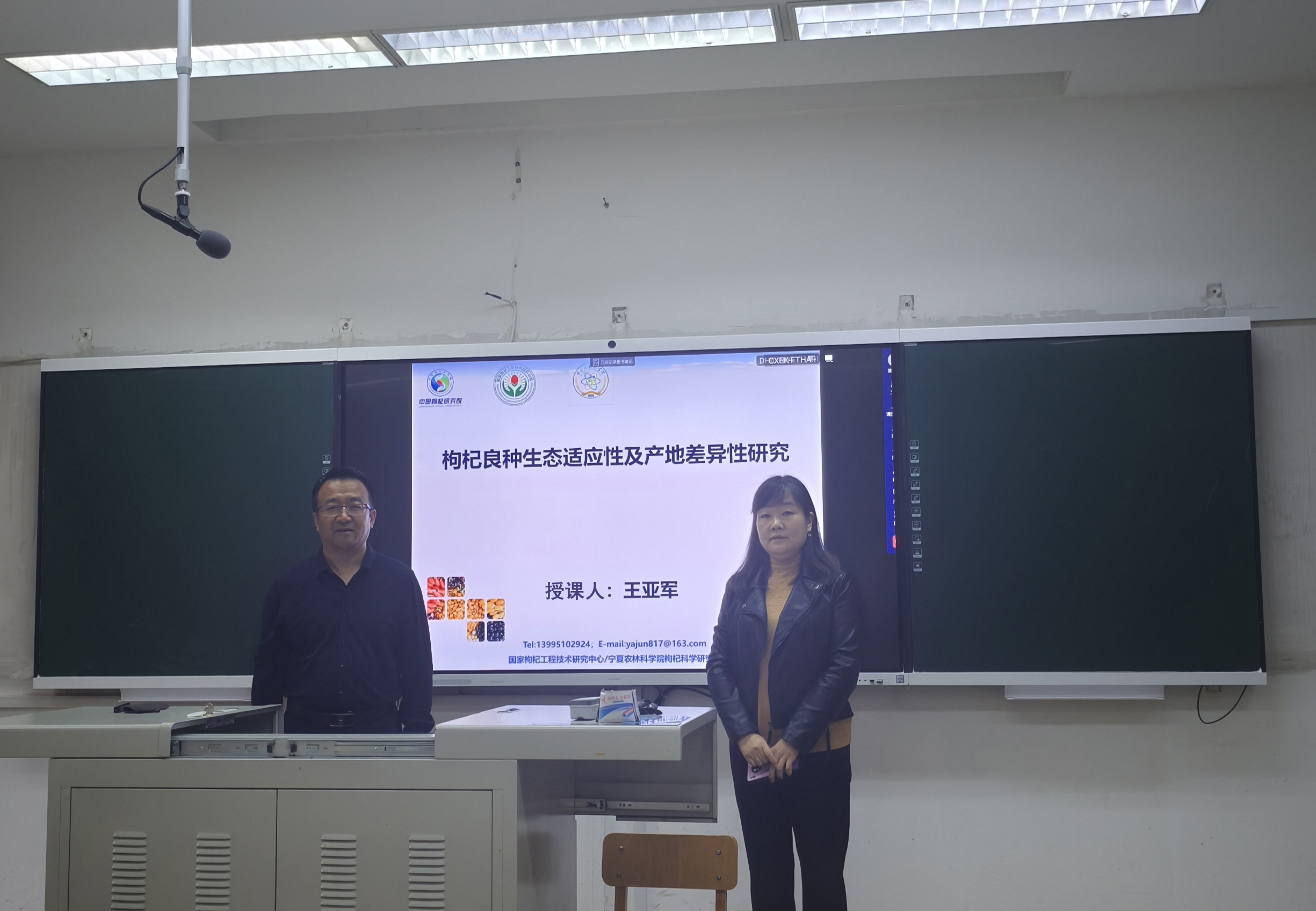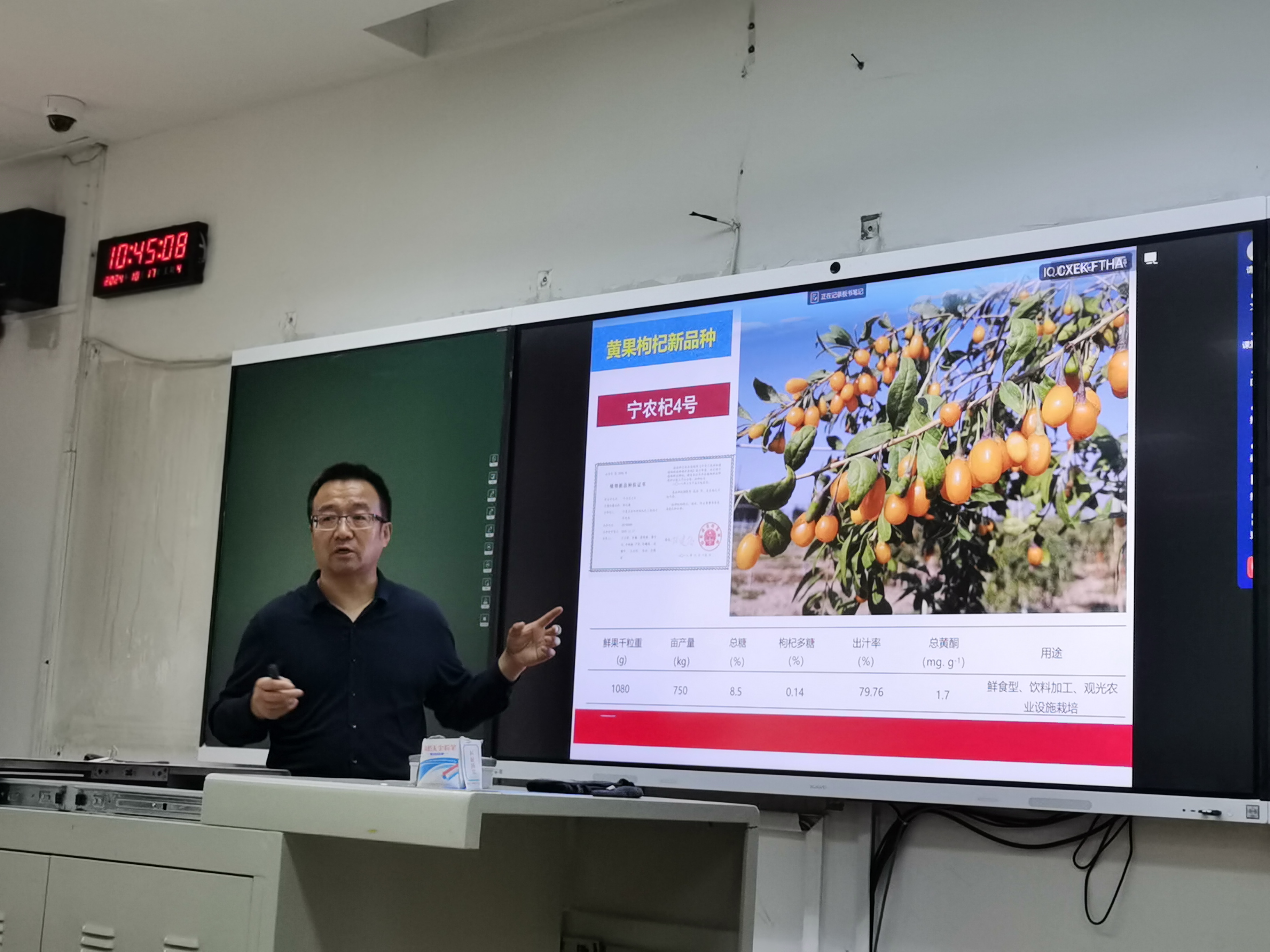 在本次授课中,王亚军老师以“枸杞良种生态适应性及产地差异性研究”为题,从枸杞良种及主栽品种、枸杞生态适应性、枸杞产地差异、枸杞耐盐机理及盐碱地枸杞栽培模式等方面进行了系统讲解,同时也讲解了黄果枸杞的培育过程及品种特性。整堂授课内容丰富、条理清晰,使同学们进一步了解了宁夏枸杞产业的现状及研究进展,为进一步从事现代农业及科学研究工作明确了方向。