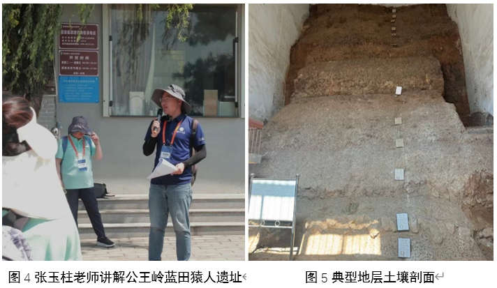 张玉柱教授的带领下,前往具有重要考古与地质价值的公王岭蓝田猿人遗址进行实地考察。活动中,师生们不仅参观了遗址博物馆内展出的百余件石器、化石等珍贵文物,还深入野外,近距离详细观察了百万年前形成的新生代地层剖面。通过考察遗址周边的自然地理环境,重点围绕该处典型的地层剖面结构及古土壤层的发育特征进行系统学习,师生们深入探讨了这些地质记录所蕴含并反映的远古环境状况与气候变化特征。