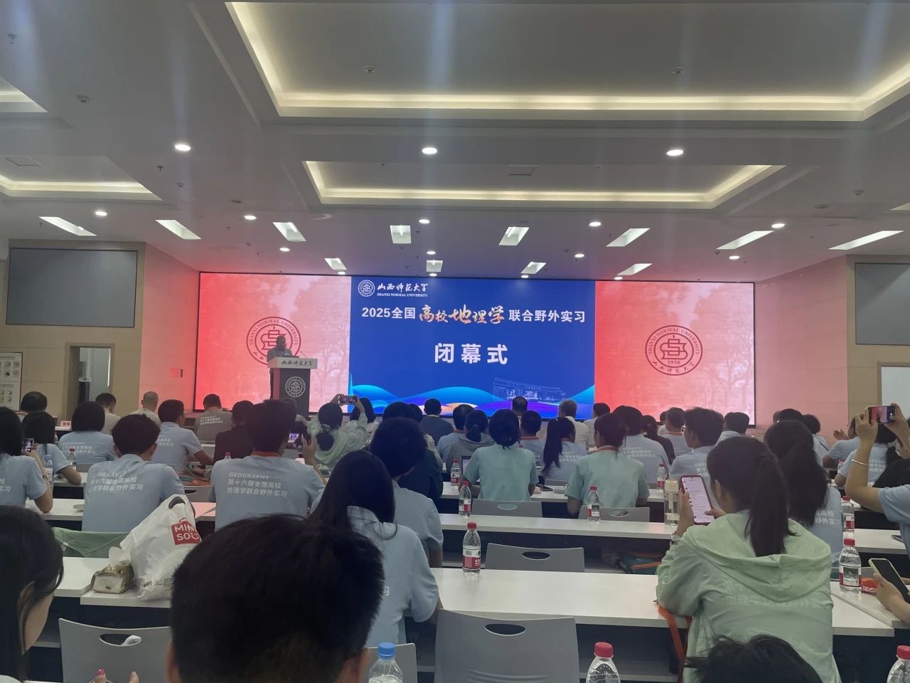 管晓刚教授分别致辞。教育部高等教育地理科学类专业教学指导委员会副主任郑祥民教授,以及陕西省有突出贡献专家、原西安石油大学党委书记惠泱河教授对本次实习活动进行全面总结,并为在终期汇报中获奖的小组颁发了奖项。闭幕式在热烈的掌声中结束,标志着本届联合野外实习顺利完成。