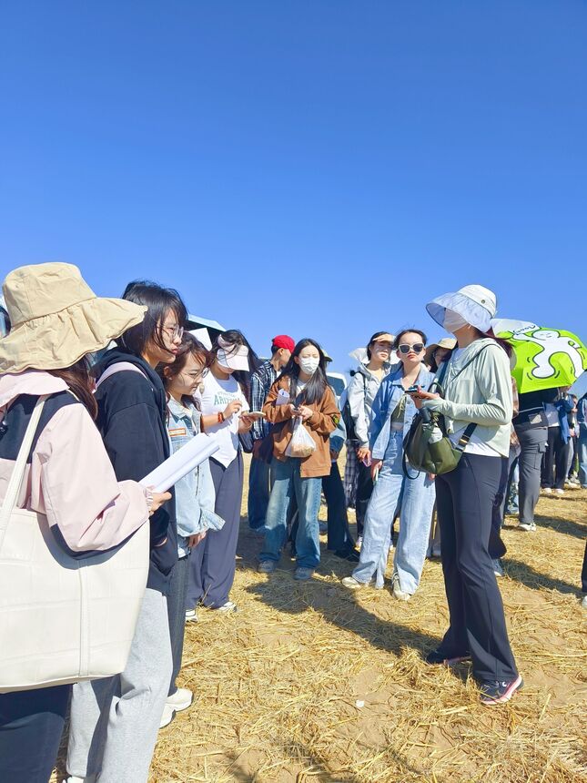 “众志缚沙数十载,万亩绿洲展新颜”,在三代白芨滩人60年坚持不懈地防沙治沙下,白芨滩在浩瀚沙漠中筑起了一道长达近百里的绿色屏障,有效遏制了毛乌素沙漠的南移西扩。在这里我们了解到了白芨滩国家级自然保护区的土壤,气候,水文等地理特征以及三代治沙人的故事。卜晓燕老师介绍了白芨滩地域分异规律和自然保护价值,本次实践活动充分依托白芨滩国家级自然保护区生态教育资源,让同学们亲身感悟治沙精神,体会荒漠化治理的挑战之大和付出之多。