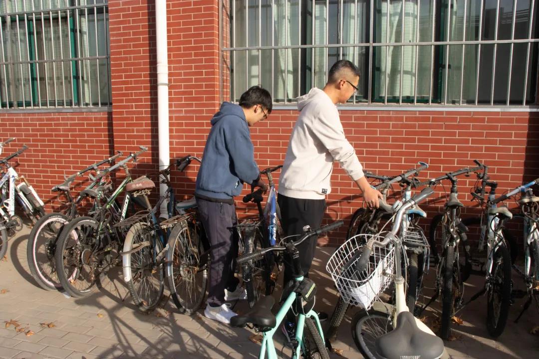 瑟瑟秋风,阻挡不了同学们乐于奉献的激情。活动开始,各班志愿者干劲十足。一部分同学对摆放不整齐的自行车进行逐一摆放,另一部分同学在积极寻找合适的自行车摆放点,大家忙碌的身影,俨然成为校园内一道亮丽的风景线。9号公寓楼下自行车数量较多,较为杂乱,同学们齐心协力,在完成好自己的任务后还积极主动地帮助其他同学,将共享单车统一摆放在指定位置。在蓝色标线的映衬下,校园环境显得更加整齐划一,美丽舒心。