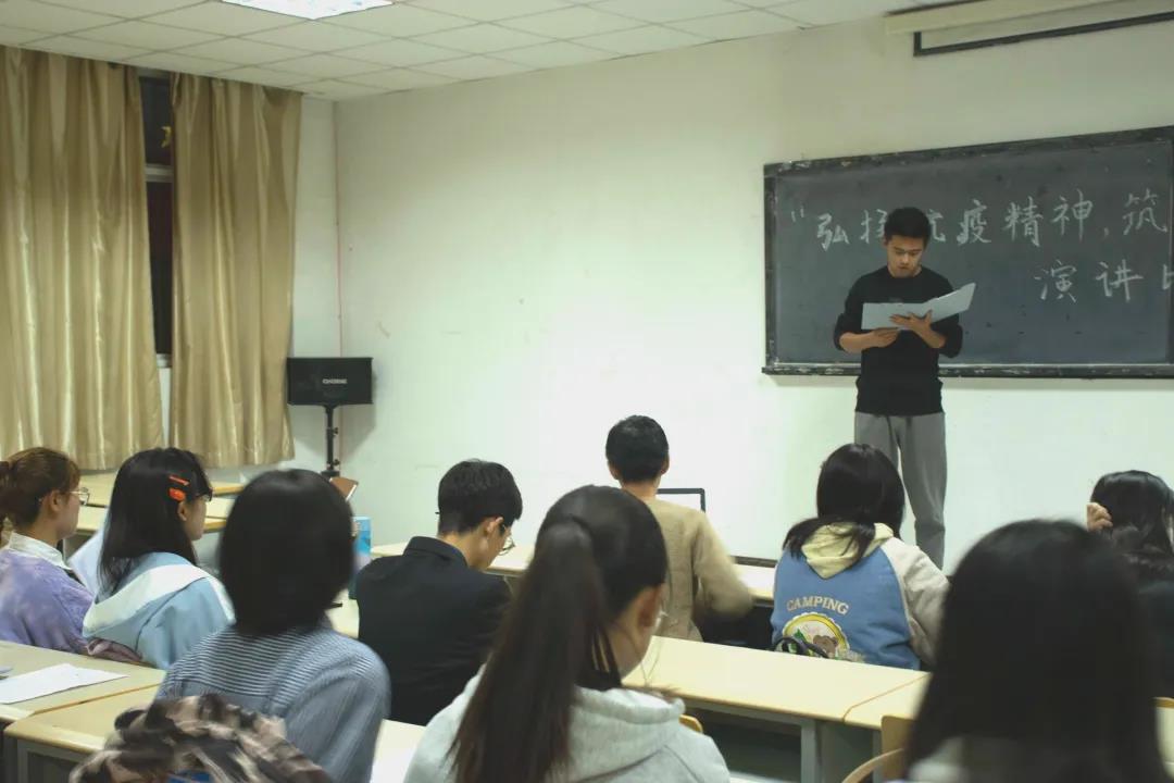 101教室举行了“弘扬抗疫精神,筑牢家国情怀”主题演讲比赛。本次演讲比赛由第十七届学生会主席团成员潘薪宇、安丰平、就业及资助服务部负责人陈韵雅担任评委,共有12名同学参加此次演讲比赛。