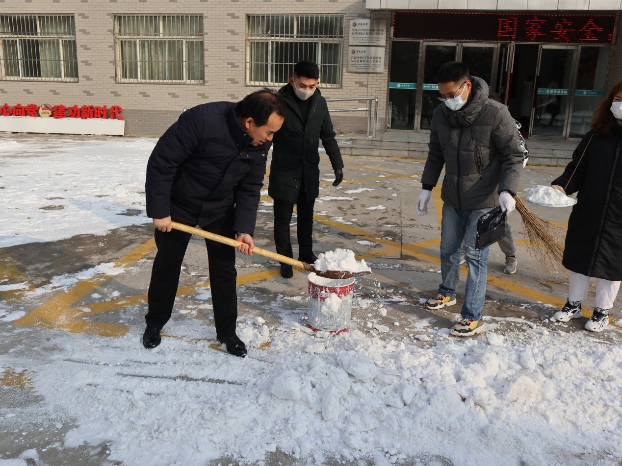 “清雪玉为铲,俯首甘为牛”,在学校学工部部长、学生处处长罗进德老师的带领和率先示范下,在线德州扑克师生积极行动起来,开展扫雪活动,畅通道路、消除隐患,保证学校的正常教育教学秩序。虽然道路上的冰雪因来往车辆和行人的碾压紧紧地附着在地面上,但这并没有打消同学们积极劳动的热情。在老师们的带领下,同学们倾尽在线德州扑克
