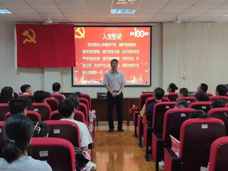 组织全体教工和学生党员在二楼报告厅线上收听收看了中共中央在北京天安门广场隆重举行庆祝中国共产党成立100周年大会直播和习近平总书记发表的重要讲话。之后,由陈军胜书记带领新党员入党宣誓、老党员重温入党誓词。