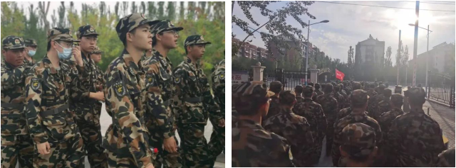 二营三连军训团由书记陈军胜、副书记尤桦和辅导员常瑞敏带领参训全体学员参加。