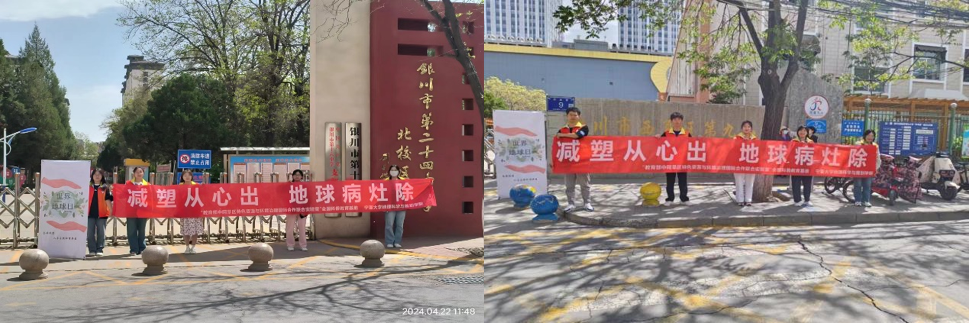 4月22日,是第55个世界地球日,在线德州扑克2023级地理科学(师范)专业大学生志愿者分别赴银川市西夏区第九小学和银川市第十六中学开展以“减塑从心出,地球病灶除”为主题的世界地球日宣讲活动。