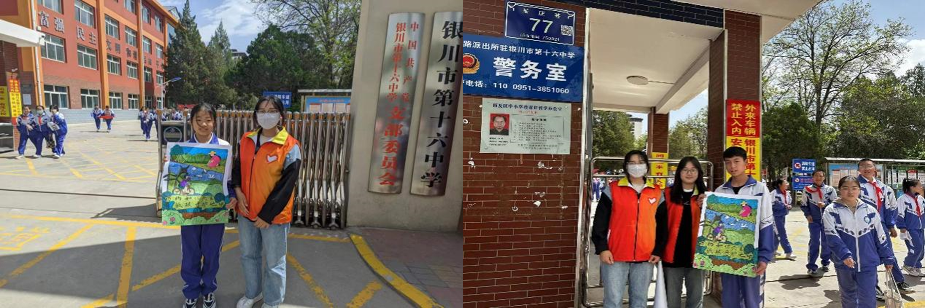 在银川市第十六中学,江靖洲、马媛媛等同学通过发放宣传资料、讲述环保故事等方式对中学生进行环保意识的宣传。
