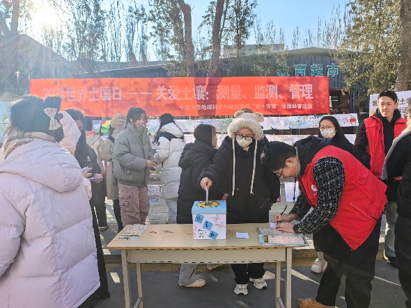 近60名学生、老师前来参加。宣传员们向在校同学介绍土壤日的由来、进行土壤知识讲解,并通过宣读《保护土壤倡议书》、投票评选最佳海报和发放土壤保护宣传手册等方式,让学生们重新认识土壤,让环保知识、生态文明的绿色理念走进校园,营造人人关心土壤、人人参与环保的良好氛围。